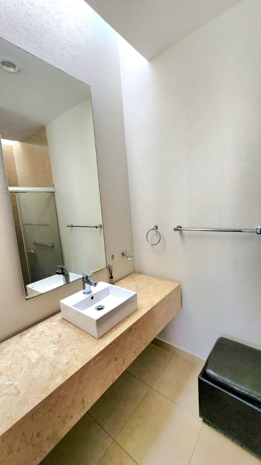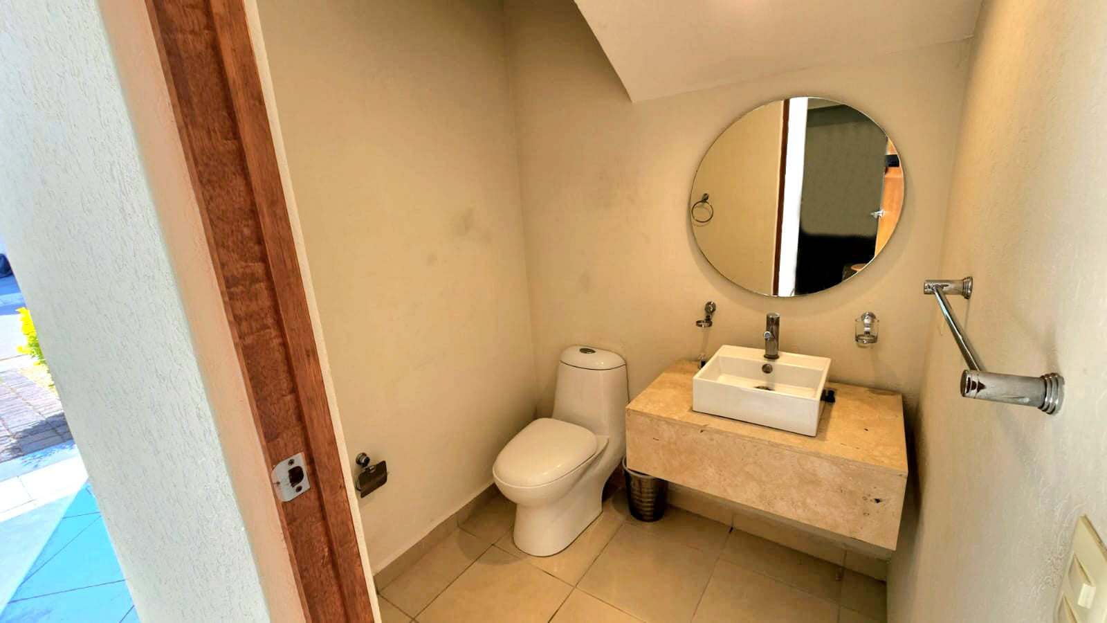 CASA EN RENTA EN RINCON DE LA MONTAÑA, MORELIA. En planta baja cuenta con cocina equipada, sala, comedor, medio baño, estudio o 4 recámara con baño completo, terraza, patio de servicio, cuarto de servicio con baño completo, jardín exterior y cochera para 2 autos. En planta alta cuenta con 3 recámaras, la recámara principal con closet, terraza y baño completo, las otras 2 recámaras secundarias con closets y comparten baño completo. Casa en frente a área verde.