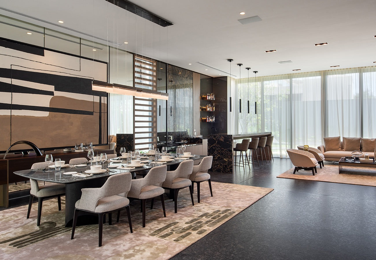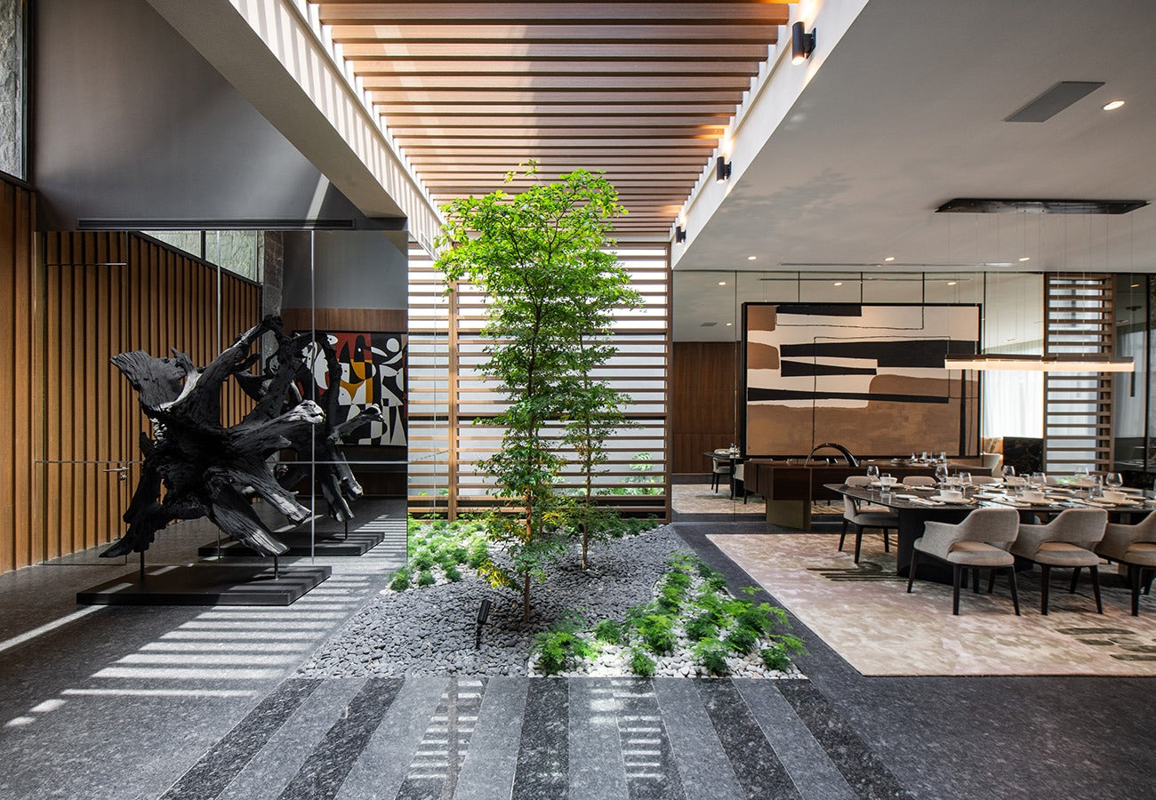 CASA RESIDENCIAL DE AUTOR AMUEBLADA EN VENTA EN RESIDENCIAL CORDILLERA SANTA CATARINA, NUEVO LEON. Tiene un terreno de 600.41 m2 y una construcción de 572.23 m2. En Planta baja alberga exquisita área de sala y comedor para 10 personas, recibidor doble altura y jardín interior, así como bar con acabados de granito. Cuenta con puertas ocultas que permiten amplitud o independencia espacial.