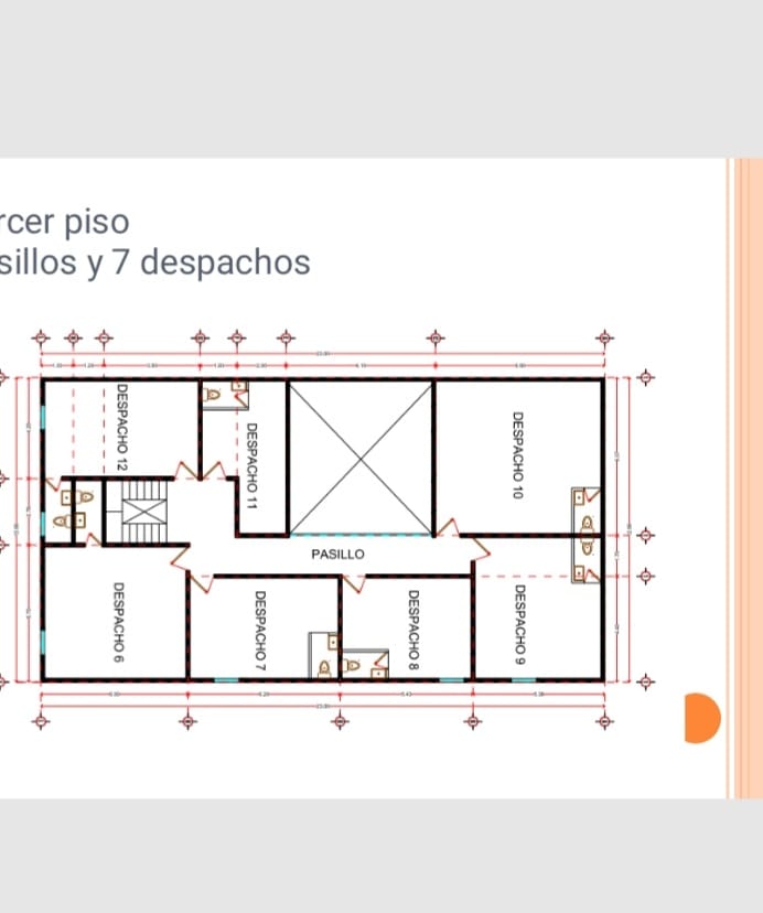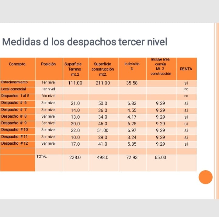 OFICINAS EN RENTA EN EL CENTRO HISTORICO, MORELIA. Tiene un terreno de 111 m2 y una construcción de 211 m2. Edificio en renta en el tercer nivel con 7 oficinas cada una con medio baño y acceso por escalera. Cuenta con estacionamiento.